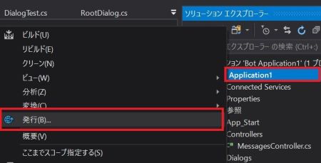 ② [ソリューションエクスプローラー] → [プロジェクト名]を右クリック → [発行]をクリックします。